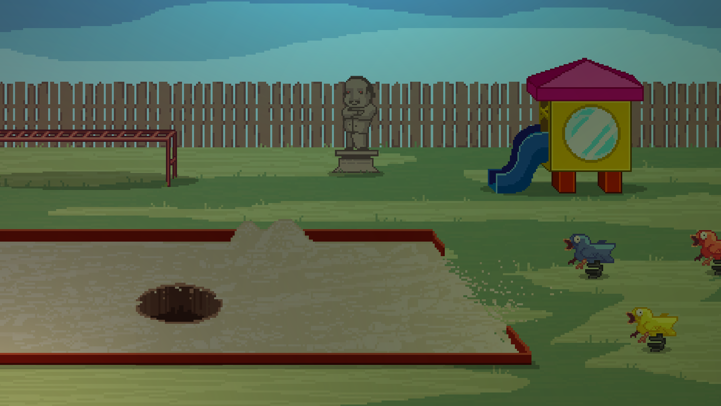 Kindergarten is an abstract puzzle adventure game. You play as a student in a school that’s a bit…off. The teacher is trying to get rid of her kids. the janitor is frequently seen cleaning up blood. The cafeteria is serving the same slop over and over again. Kids are walking around with strange devices planted on them after visiting the principal, and one of your fellow classmates has gone missing. It’s up to you to figure out what’s going on, because your life might depend on it.