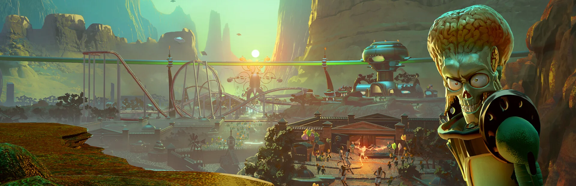 Mars Attracts is a theme park management game set on Mars. Play as the devious Martians from the cult-classic universe of Mars Attacks™ and build your amusement park empire, abducting humans from across history to display in customizable enclosures for the entertainment of curious Martian guests. Study humanity in their natural habitat, or subject them to whatever twisted experiments you can imagine!Business Is Boomin'!