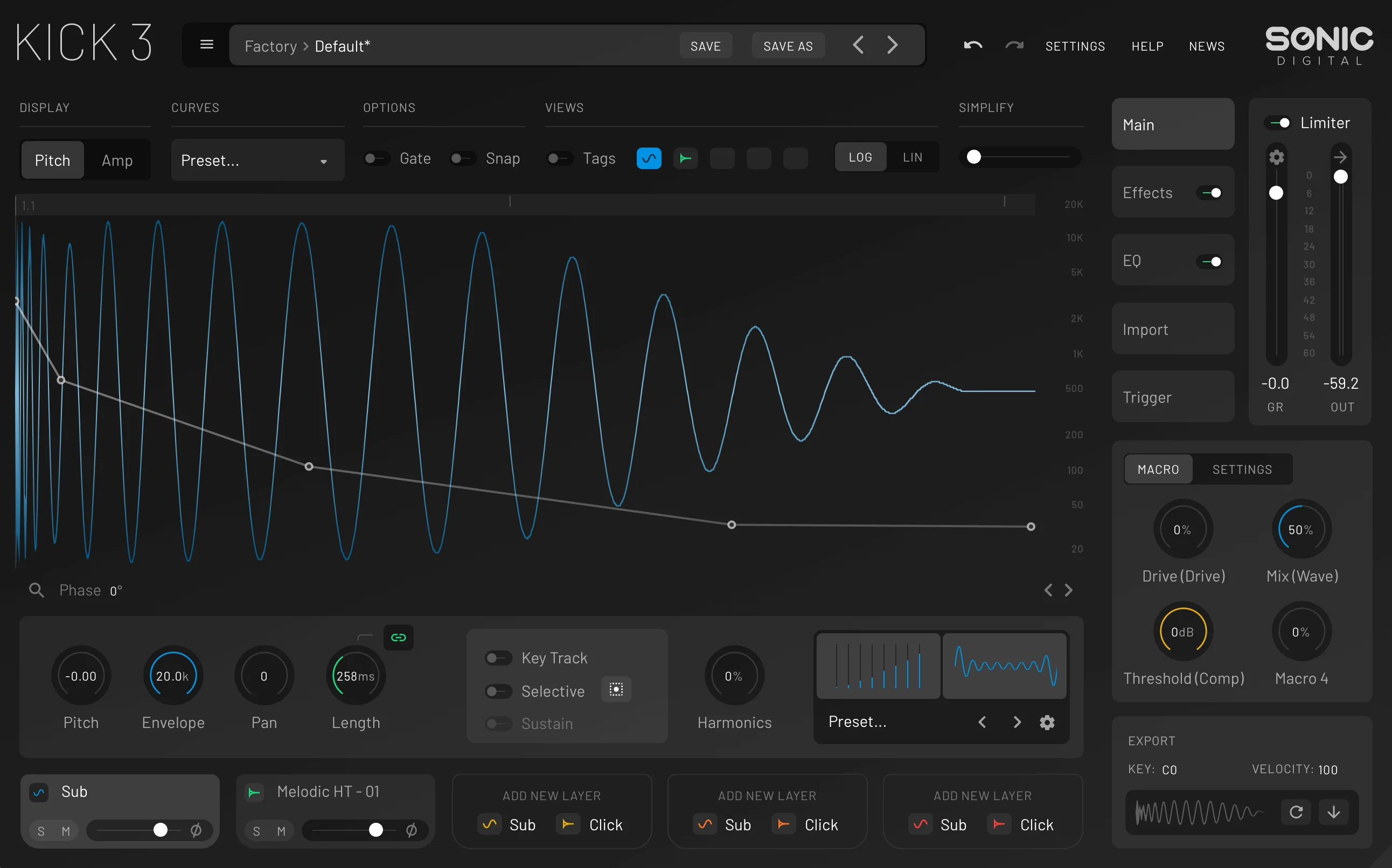 KICK 3 allows you to effortlessly sculpt, shape, and create the perfect kick drum tailored to your tracks, now with groundbreaking new features that push sound design to new heights.